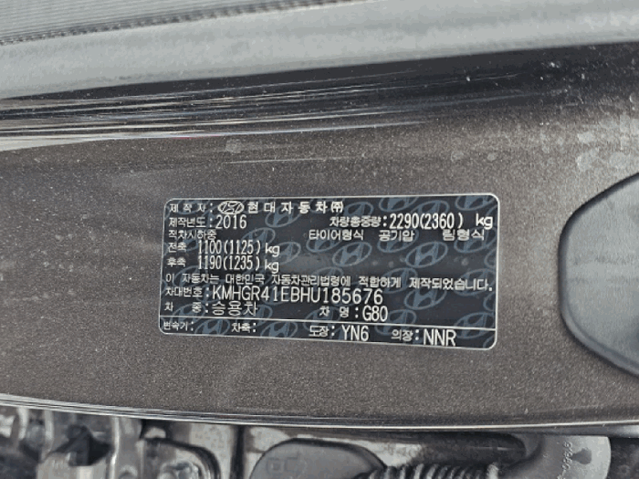| 차대번호 | KMHGR41EBHU185676 | ||