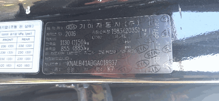 | 차대번호 | KNALB41ABGA018937 | ||