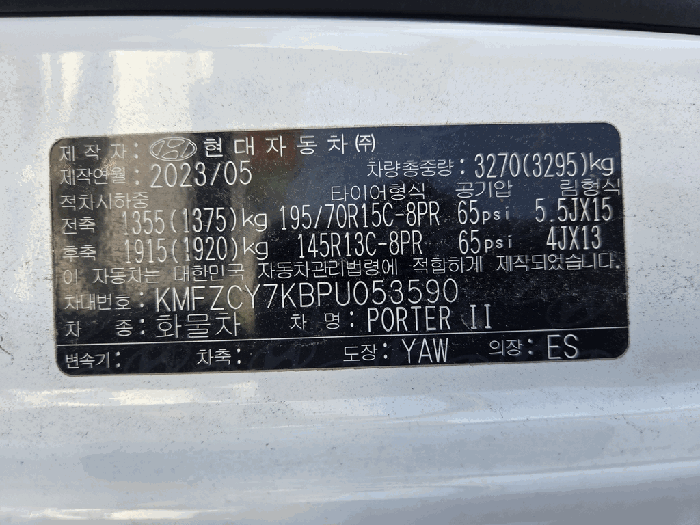 | 차대번호 | KMFZCY7KBPU053590 | ||