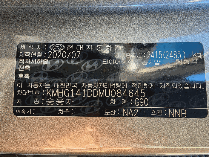 | 제조사 | 제네시스 | 차량명 | G90 |