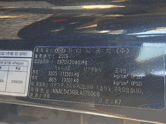 | 차대번호 | KNALD416BLA176008 | ||