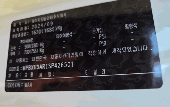 | 차대번호 | KPBXH3AR1SP426501 | ||