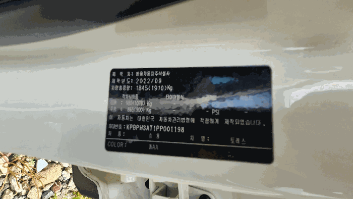 | 차대번호 | KPBPH3AT1PP001198 | ||