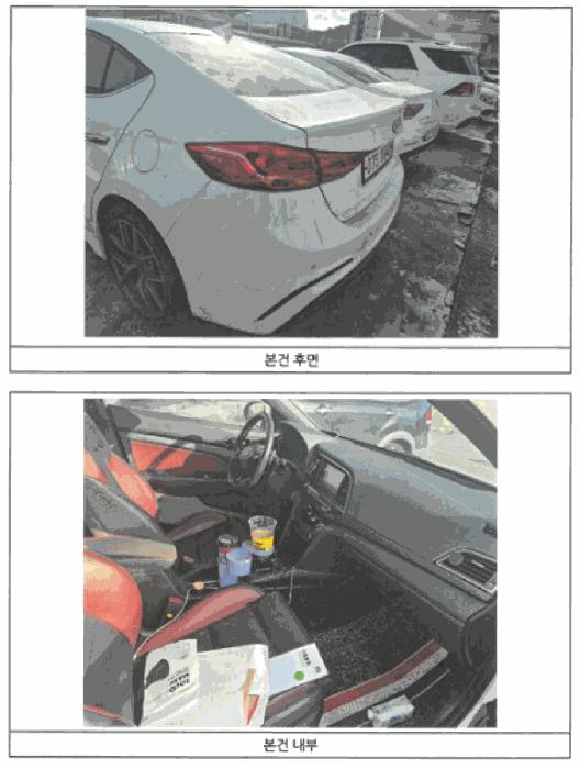 | 비고 | -계기판상의 주행거리는 194,338km -유효검사기간 2022.05.14.~2024.05.13. -사용연료는 가솔린임 -시동계통은 정상이나 미션계통의 이상으로 전진이 불가능한 것으로 확인됨 | ||