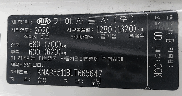 | 제조사 | 기아 | 차량명 | 모닝 |