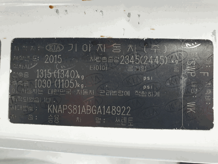 | 차대번호 | KNAPS81ABGA148922 | ||