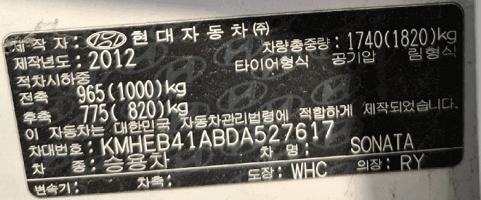 | 차대번호 | KMHEB41ABDA527617 | ||