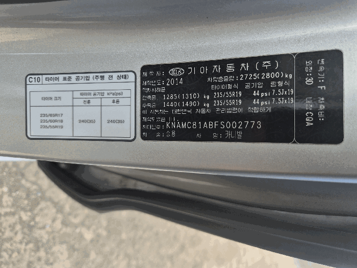 | 차대번호 | KNAMC81ABFS002773 | ||