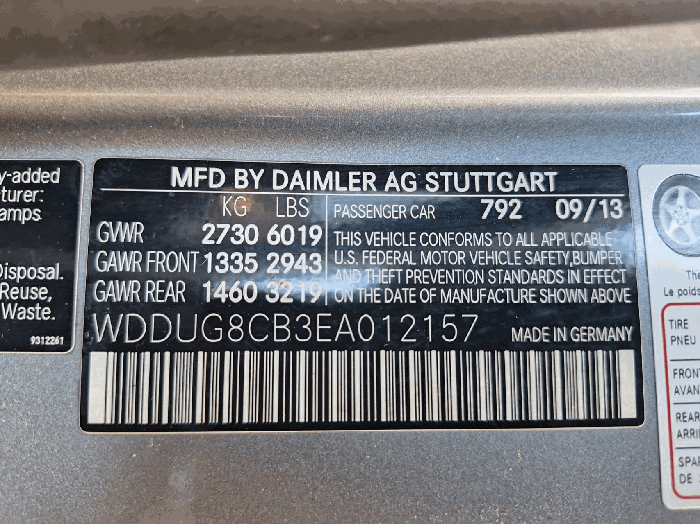 | 차대번호 | WDDUG8CB3EA012157 | ||