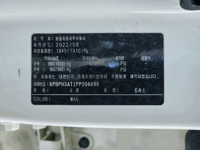 | 차대번호 | KPBPH3AT1PP004690 | ||