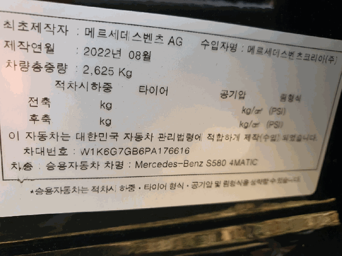 | 제조사 | 벤츠 | 차량명 | Mercedes-Benz S580 4MATIC |