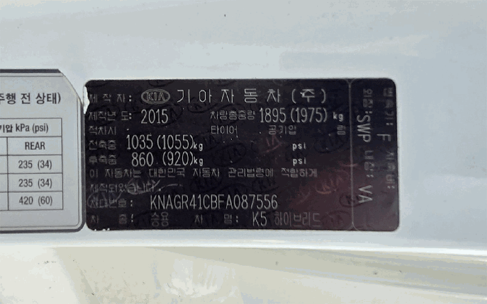 | 차대번호 | KNAGR41CBFA087556 | ||