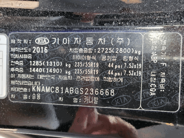| 차대번호 | KNAMC81ABGS236668 | ||