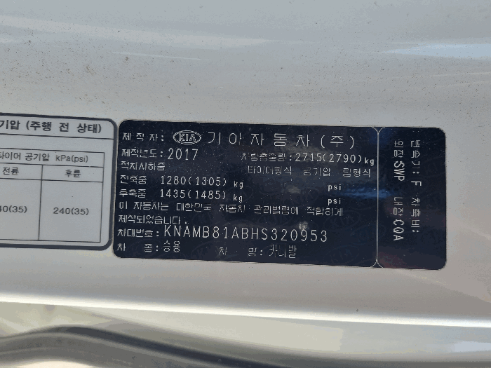 | 차대번호 | KNAMB81ABHS320953 | ||