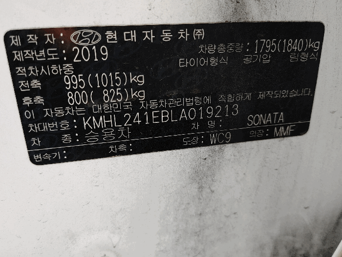 | 제조사 | 현대 | 차량명 | 쏘나타(SONATA) |