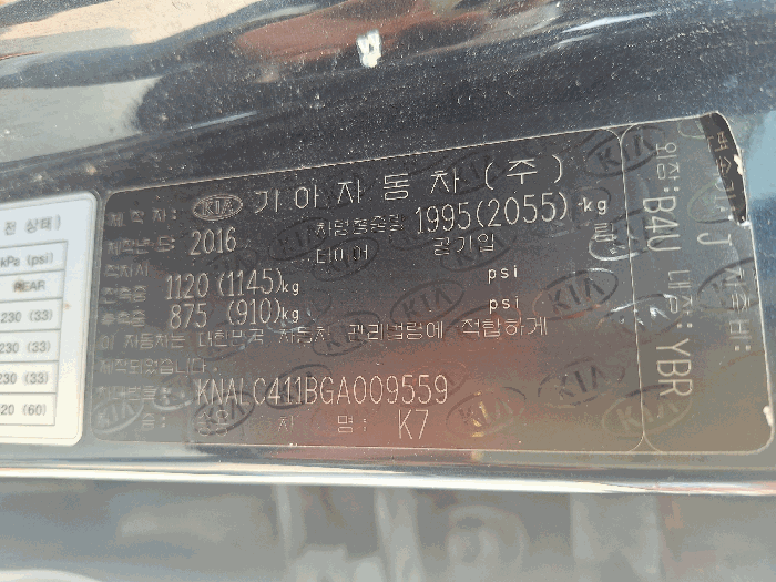 | 차대번호 | KNALC411BGA009559 | ||