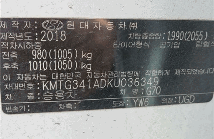 | 제조사 | 제네시스 | 차량명 | G70 |