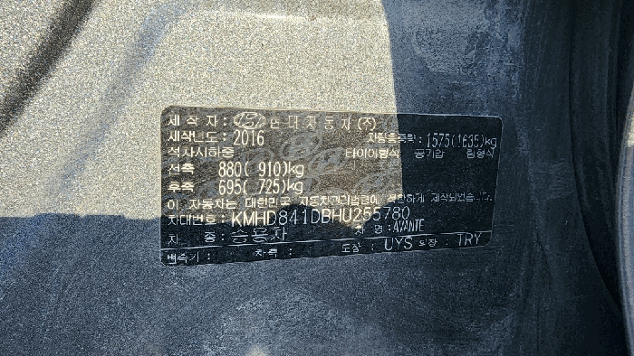 | 차대번호 | KMHD841DBHU255780 | ||