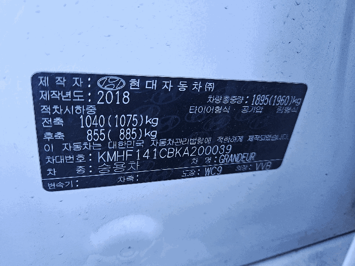 | 차대번호 | KMHF141CBKA200039 | ||